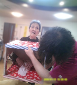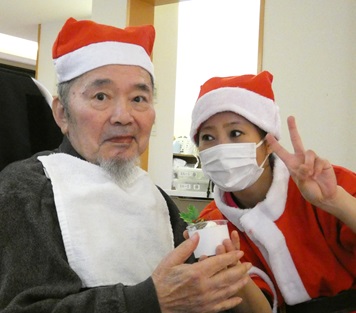 みんな一緒にサンタ帽をかぶって、クリスマスソングを歌ったりゲームをしたり